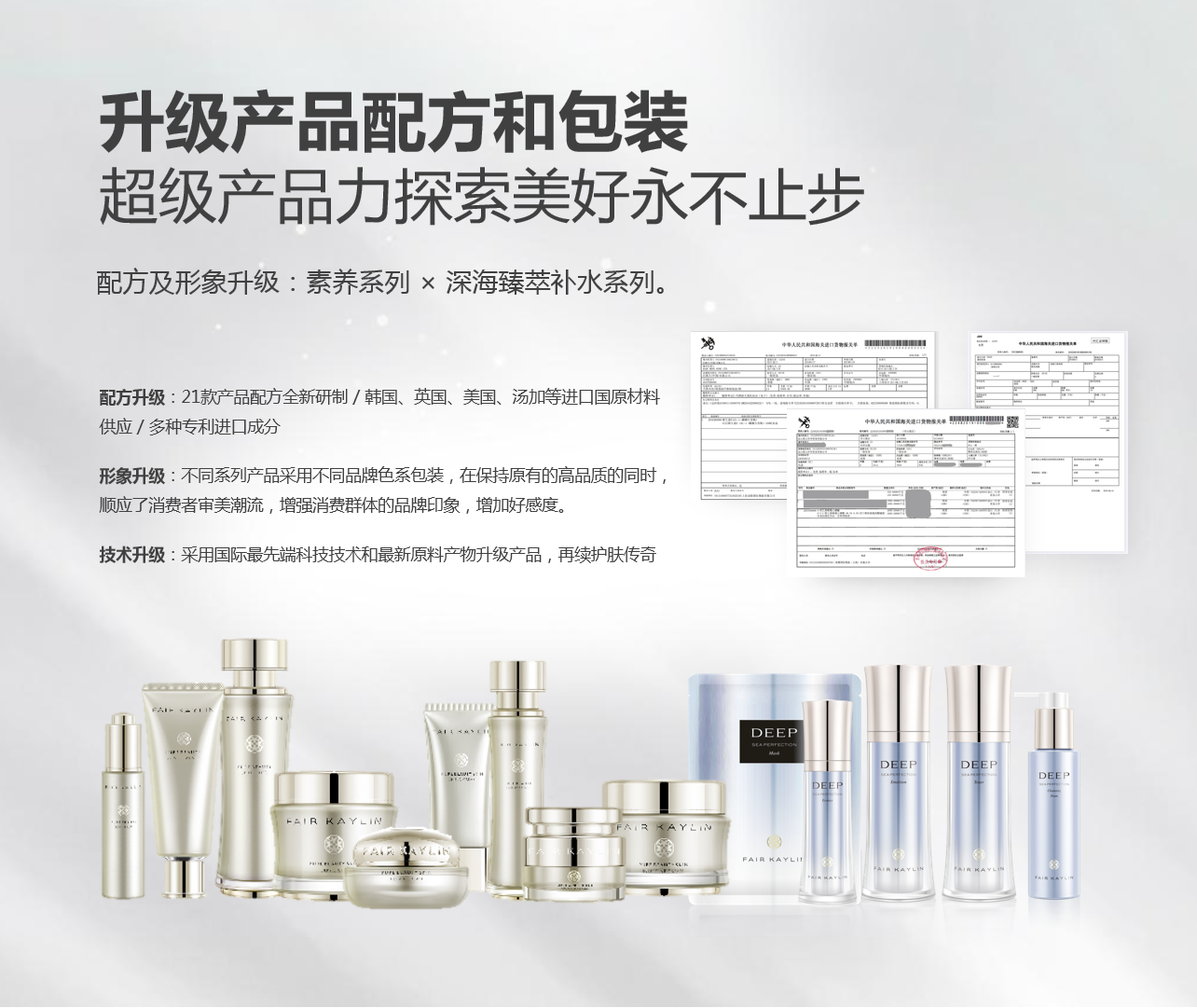 华瑞凯琳品牌升级并不止于此。除了图形logo、色调之外,华瑞凯琳英文FAIR KAYLIN更是将品牌内涵具象化。FAIR简化自原英文标识FAIRY,代表品牌的产品内涵“肤色白皙”,更清楚表达产品价值;KAYLIN,则意味着独立、纯洁、浪漫和爱,象征着对现代女性的美好祝福。采用FAIR KAYLIN,品牌希望全世界女性可以通过素颜养肤从根源处真正修护肌肤,重拾素颜自信!