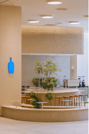 深圳湾万象城二期融合自然景观、文化体验与多元生活方式,构筑起一处充满活力的城市生态圈。蓝瓶咖啡新店择址于深圳湾之滨、“春笋”塔之畔,于都市核心营造出一处可慢步驻足、回归平静的绿洲。环绕南山的山海风光、红树林与深圳湾文化广场,共同勾勒出自然与都市共生的景致。延续这份平衡的理念,蓝瓶咖啡全新门店以都市绿洲的形象呈现宁静与自然的咖啡空间。