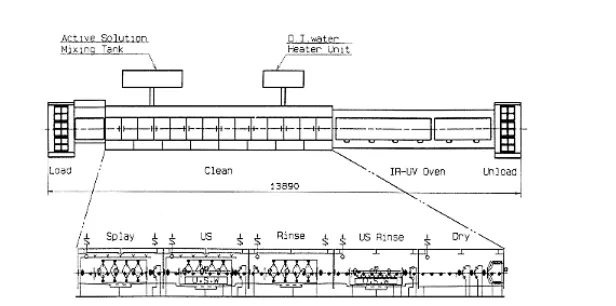 湿刻的设备一般与后面清洗、干燥的设备连成线,见下图: