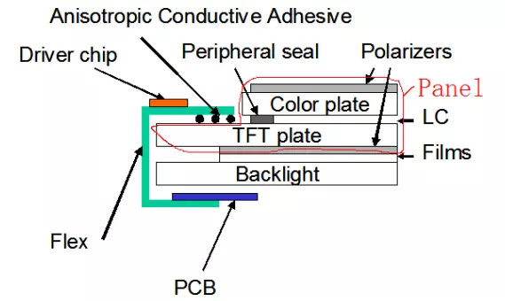 Module 工序是从 LCD 屏开始到驱动电路制作完成,形成一个显示模块。具体示意图如下: